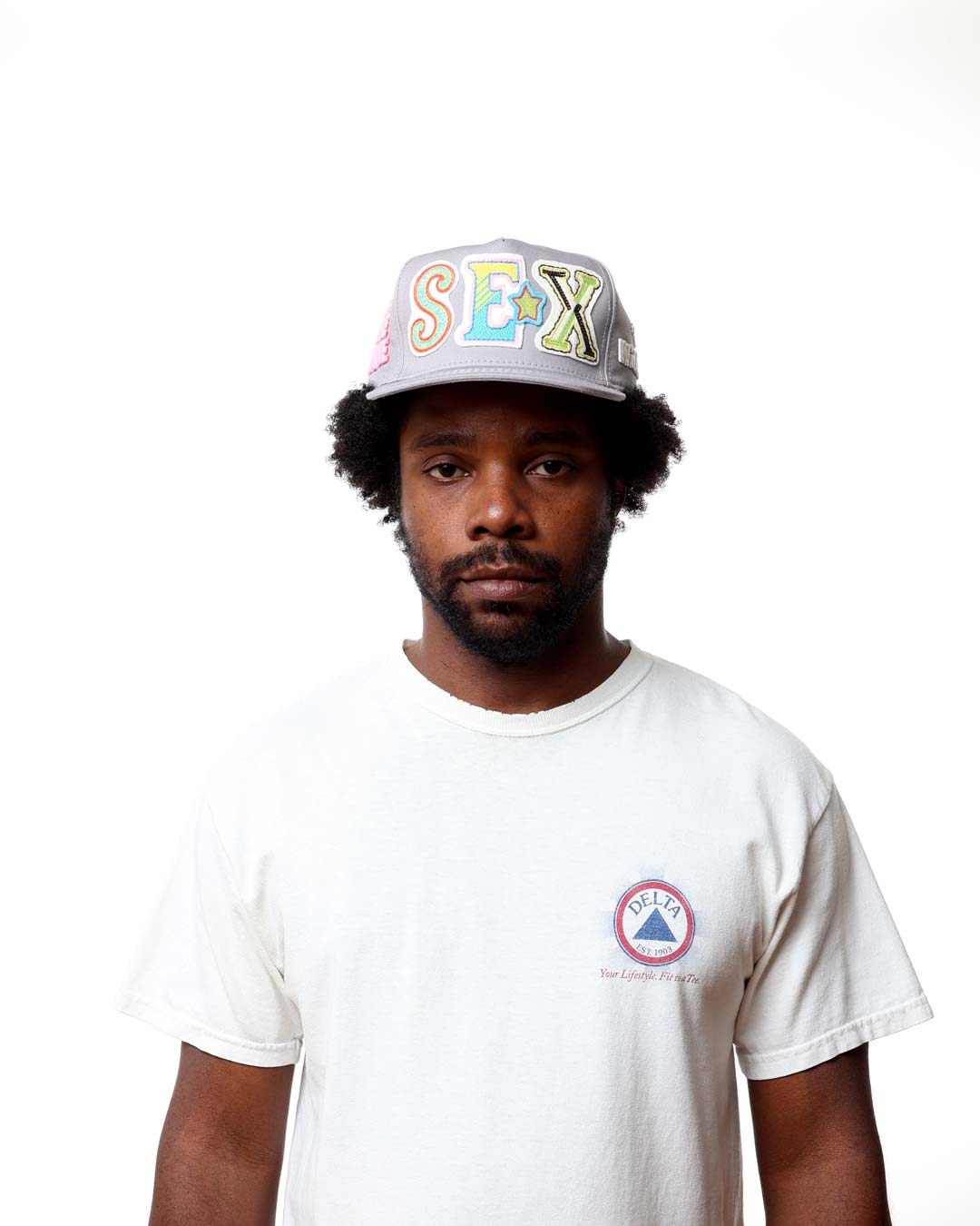 S★E→X lettering in multi-layer wool appliqué and raised-thread embroidery.